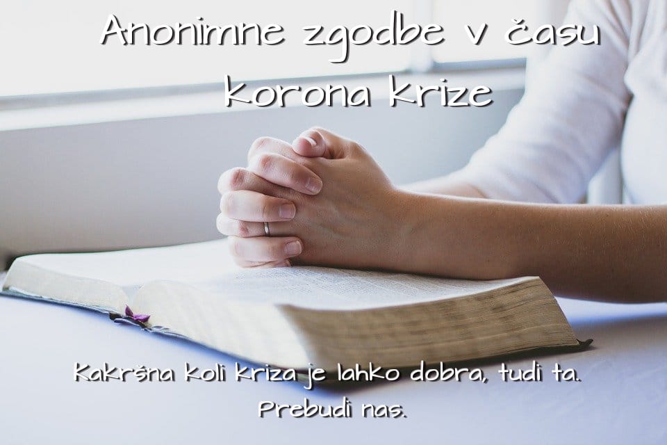 Vabimo vas, da z nami in našimi bralci delite svoje zgodbe, prigode, stiske in strahove, ki jih čutite, doživljate v času korona krize in ukrepov. Lahko nam pošljete karkoli, tudi dobre zgodbe, pozitivne strani teh neprijetnih in težkih časov. Zgodbo bomo objavili na našem portalu kot zgodbo anonimnega avtorja. Če želite, lahko postavite tudi kakšno vprašanje, dilemo, ki jo bomo poslali enemu naših strokovnih sodelavcev. Ta vam bo poskušal odgovoriti oz. svetovati po svojih najboljših močeh.