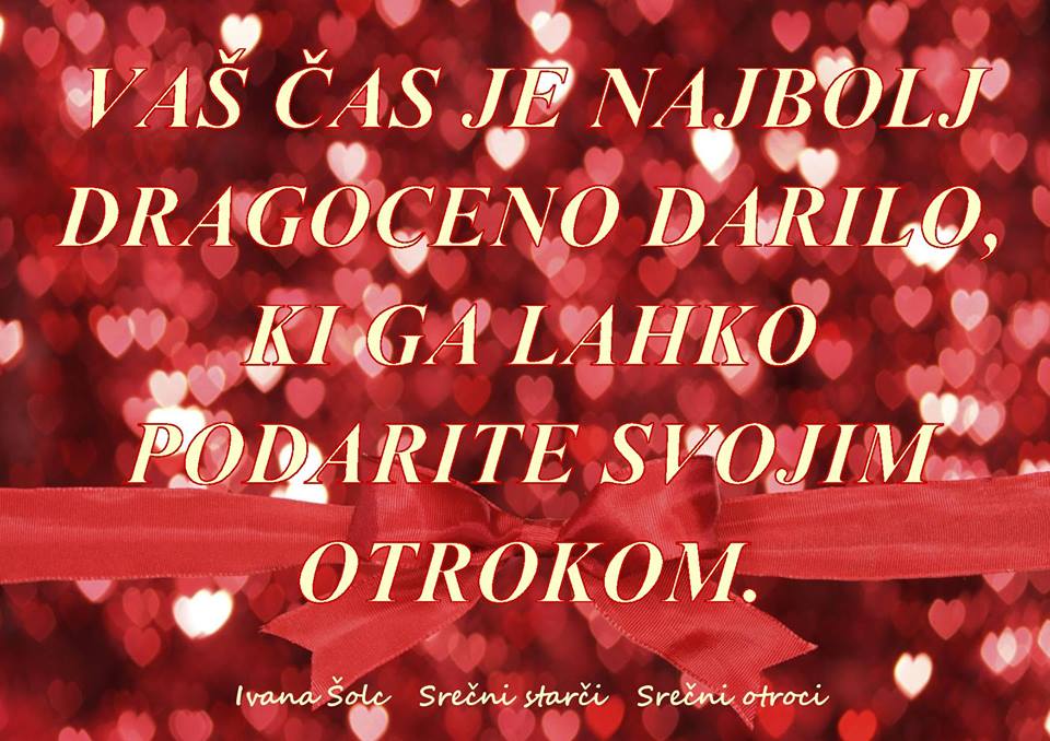 Čas teče, preteklosti ne moremo spreminjati, popravljati, nadoknaditi zamujenega. Vsak trenutek pa je dober za nov začetek! Poglejte otroka v oči in ga samo poslušajte. Poslušajte! Otrok želi samo biti slišan. Za to potrebujete čas. Svojemu otroku podarite najbolj dragoceno darilo: vaš čas!