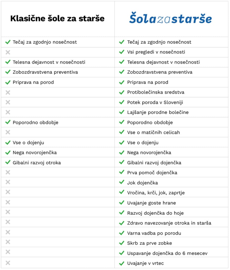Starši morajo raziskati različne ponudbe priprav na porod in starševstvo, preveriti kakšen program ponujajo, katere teme pokrivajo njihovi programi, v kakšnem obsegu so in nenazadnje, kdo je tisti, ki izvaja program oziroma posreduje informacije.Programi naj pokrivajo vsa ključna področja – porod, poporodno obdobje, dojenje in vsebine o novorojenčku, vključno z nego in rokovanjem.