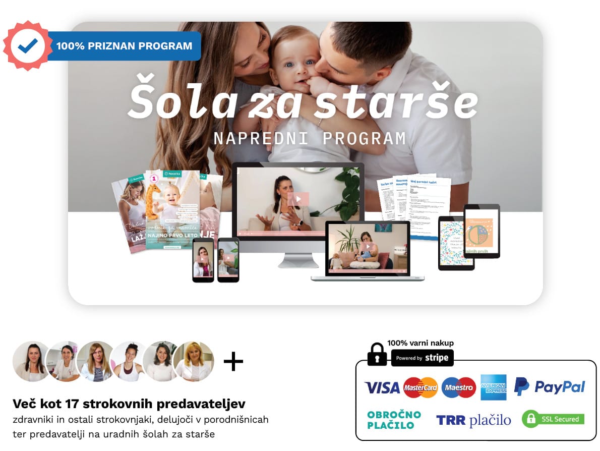 Danaja Oblak: Šole za starše se običajno udeležite po 12. tednu nosečnosti, kjer boste obiskovali tečaj za zgodnjo nosečnost. Če boste pa izbrali spletne tečaje, pa lahko tudi nekoliko kasneje, ampak priporočljivo je, da že veste, kako poteka nosečnost, kako skrbeti za telo in se fizično in mentalno pripraviti na porod.