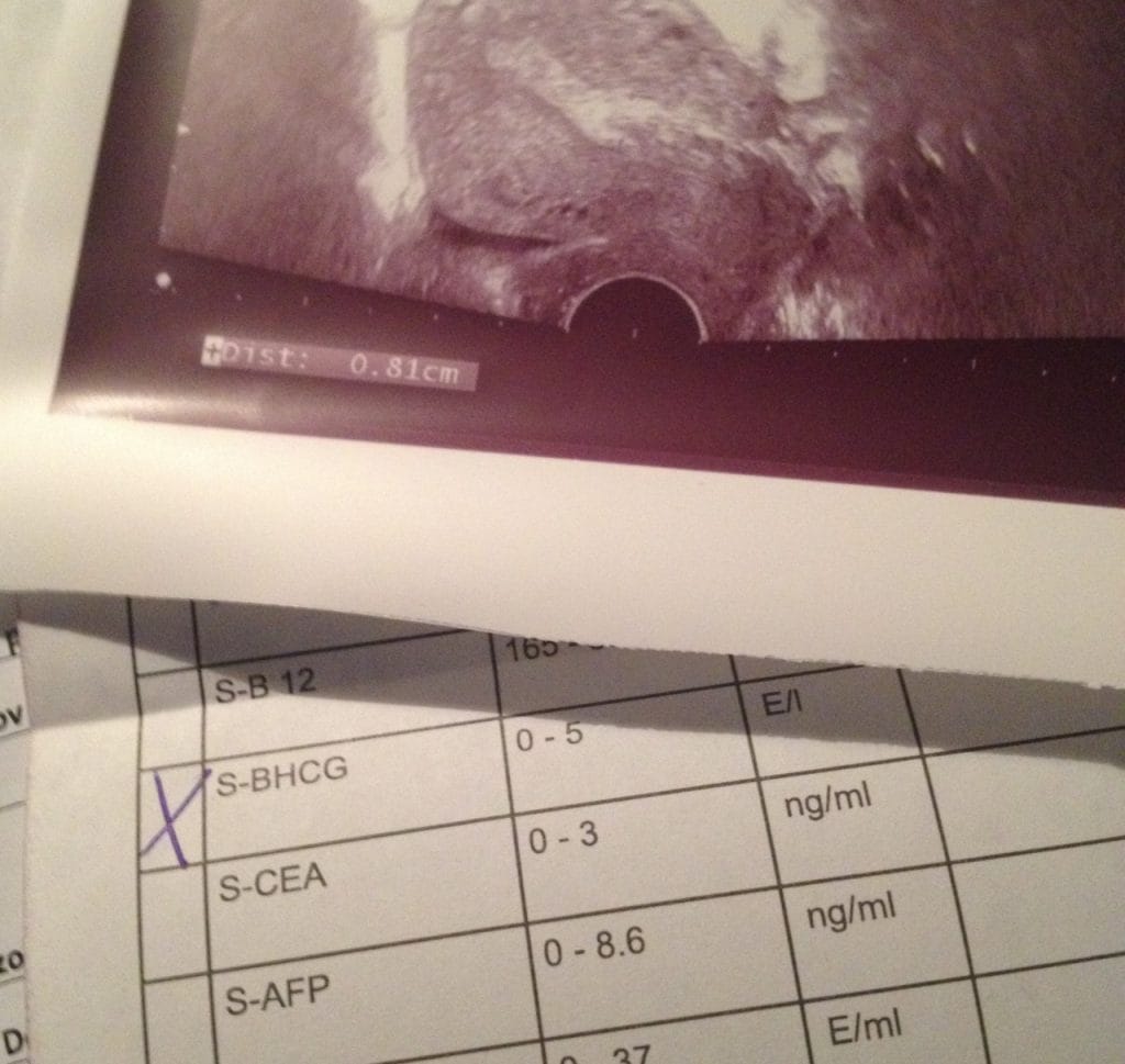 Pol ure pred klicem v ambulanto pa je začelo teči, kot bi prišla na vrsto menstruacija. Takrat ni bilo več dvoma. Poklicala sem, sestra mi je povedala, da naj kar takoj pridem k njim in sprejeli so me precej hitro. Preden sem stopila do zdravnice, sta me še vprašali kakšne so težave in precej dolg čas mirnega obraza se je v trenutku končal. Povedati na glas, da močno krvavim je bilo izredno težko. Ampak sem jima bila kar nekako hvaležna, ker sem zdravnici potem situacijo objasnila veliko lažje. Vse skupaj sva preverili in zdravnica je moje slutnje morala žal potrditi. Vsega skupaj je na žalost konec. Šla sem še v laboratorij in dala kri, da bomo preverili spremembo nosečniškega hormona, v četrtek pa grem spet. V Ponedeljek prihodnji teden bomo še opravile kontrolo z ultrazvokom, da bomo videle, če se je sčistilo samo ali bo potrebno še dodatno čiščenje.