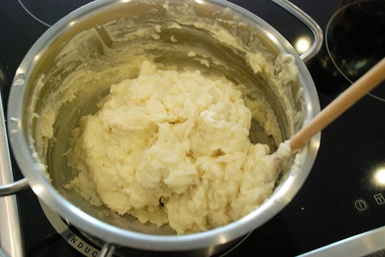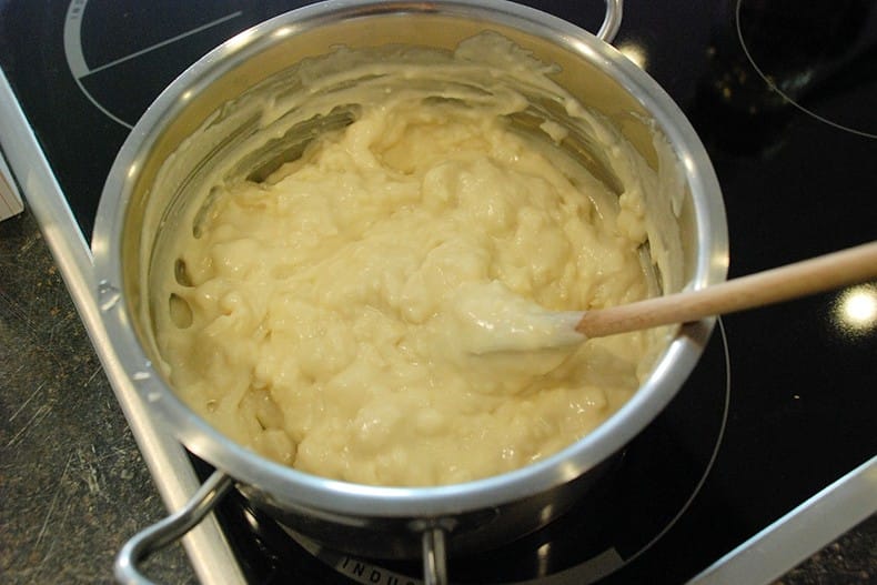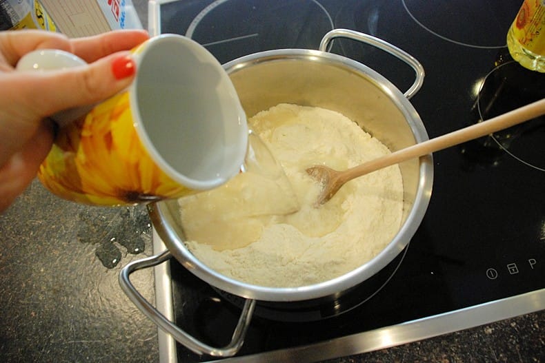 Kuhamo na srednjem ognju in neprestano mešamo. Masa se bo počasi začela strjevati – takrat ogenj malo zmanjšamo.