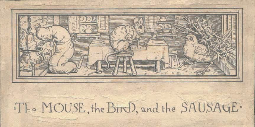 Pred davnimi časi so mišek, ptička in klobasa pričeli svojo navezo in pričeli tudi stanovati skupaj. Zelo dolgo jim je šlo odlično; živeli so v velikem udobju in uspeli svoje zaloge znatno povečevati. Naloga ptičke je bila, da je dnevno poletela proti gozdu in poskrbela za kurivo; mišek je prinašal vodo, klobasa pa se je lotila kuhanja.