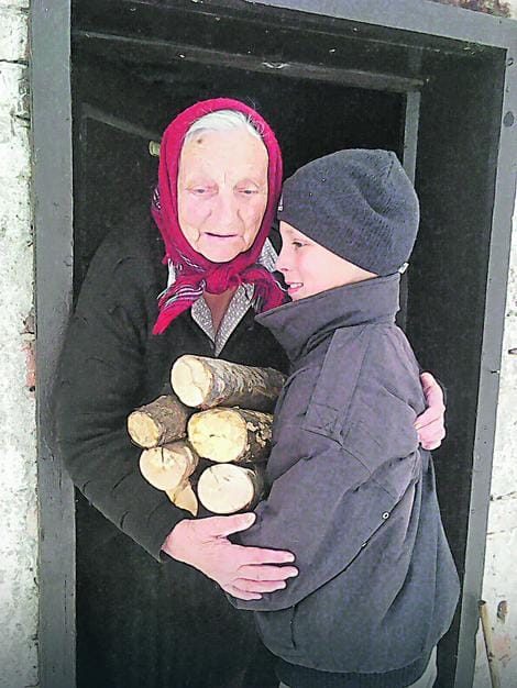 Nič mu ni težko. Radoje prinese drva babici Kosi.