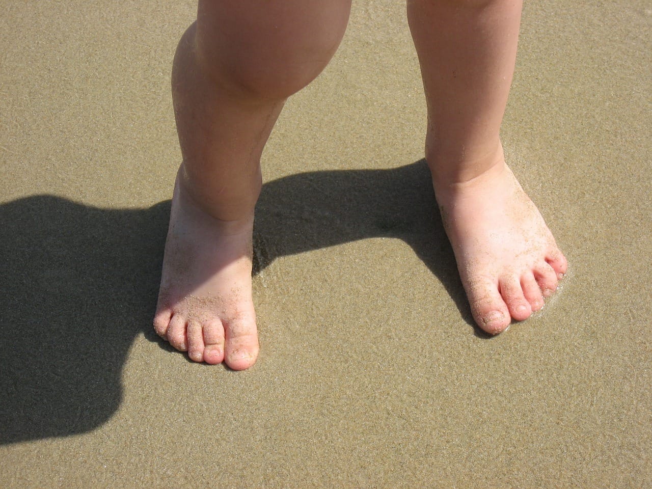 Dokler otrok še ne hodi, ga je bolje pustiti bosega takrat, ko je vroče, če ni, mu obujte bombažne nogavice. Kasneje, ko so čevlji potrebni, je potrebno izbrati udobne čevlje, mehke in dovolj odprte, vendar z usnjenimi podplati, ki omogočajo potenje stopala.