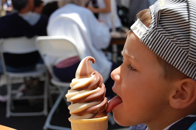 Po enem letu in pol lahko otroku ponudite sladoled, a ne pozabite na hranljive snovi, ki jih vsebuje, pa mu za toliko zmanjšajte naslednji obrok, tako da ne dobi preveč sladke hrane. Po obroku mu ne ponujajte sladoleda, ker lahko zaustavi prebavo in povzroči neprijetne bolečine v trebuhu. Najboljši je sadni sladoled, ki gasi žejo in  je lahko prebavljiv.