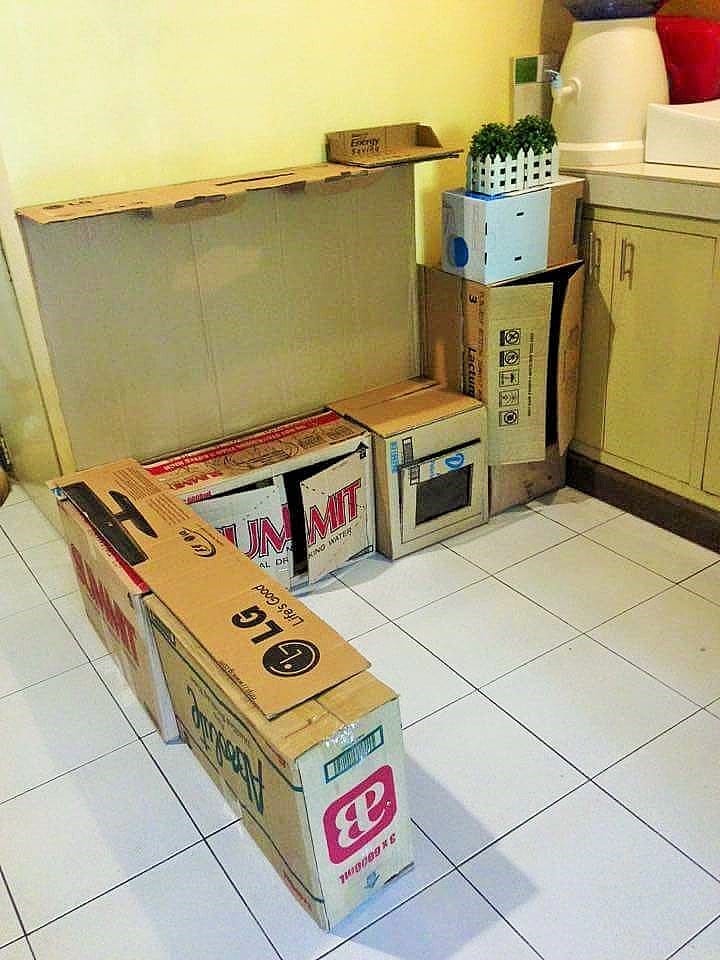 Rodesa Vilaneva-Rejes iz Filipinov dokazuje, da najboljše igrače niso nujno tudi najdražje. Svoji enoletni hčerki je naredila pravo miniaturno kuhinjo. Za svoj podvig je uporabila škatle različnih velikosti in samolepilne tapete. Ko so bili kuhinjski elementi končani, je bilo treba samo še posodo razvrstiti in kuhinja je izgledala kot tista prava.