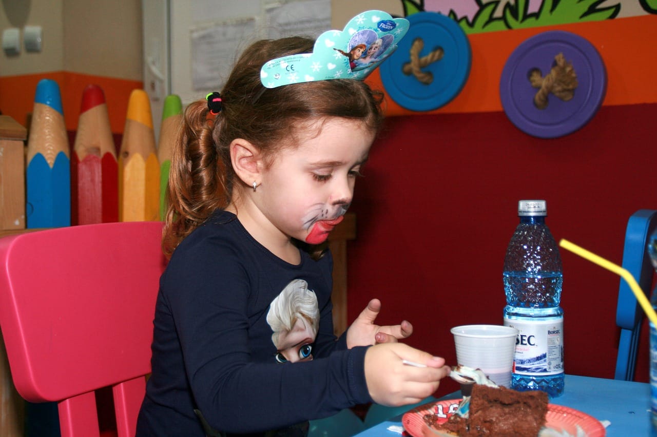 - Kar pogosto so na spisku praznovanja rojstnih dni, kamor je starejša tudi povabljena. Zabave so večinoma organizirane, z enim ali dvema animatorjema, tako da otrokom nikakor ni dolgčas. Ob koncu zabave jo vedno vprašamo, kako se je imela, kaj so počeli in kaj je bilo njej najboljše, najlepše oz. najbolj všeč. Pazite, njen odgovor je vedno isti: “najbolj všeč mi je bilo, ker je bilo veliko sladkarij in smo lahko veliko pojedli”. Včasih niti torte, ki ponavadi pride na koncu, ne zmore pojesti. Sklepam, da zato, ker se že do takrat do sitega naje raznoraznih sladkarij.