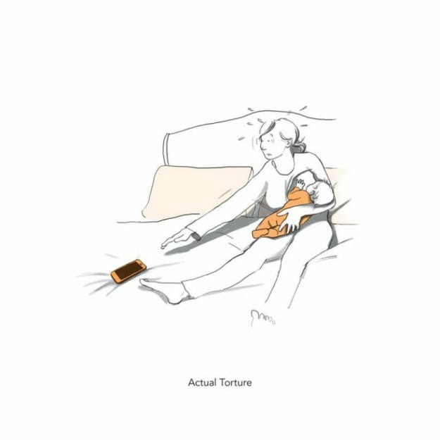 Tako blizu, a tako daleč! Ko dojenček zaspi na vaših rokah, se boste srečali s številnimi situacijami, kot je ta.