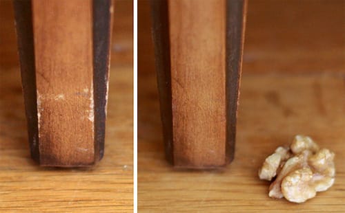 Z orehom podrgnite po praskah na pohištvu in mu prekrijemo opraskan les ter mu vrnemo sijaj.