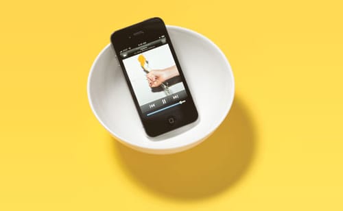Če želite povečati glasnost telefonskega zvoka (npr. glasbo), telefon postavite v ovalno posodo.