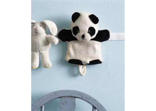 Na steno prilepite sprimni (ježek) trak in nanj pritrdite plišaste igračke.