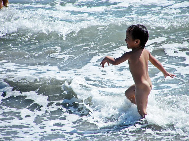 Kar se tiče perverznežev … otrok bo tako ali tako 100% časa pod nadzorom staršev (ne samo zaradi tega, ampak tudi zaradi nevarnosti, da zaide globlje v morje), tako da je vsaka neprijetnost preprečena. Večino otrok, ki sem jih videla na plaži, dovolj majhnih, da so lahko goli, starši skoraj neprestano držijo na roko ali so največ 3 metre od njih, kar je povsem OK.