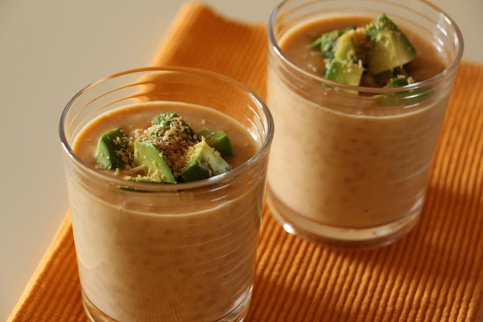 - Naložimo ga v kozarca in nadevamo s koščki avokada.