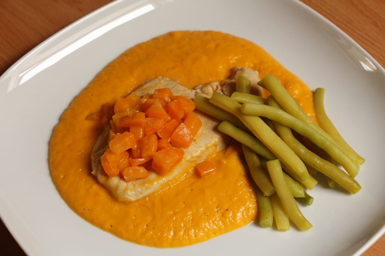 Meso s stročjim fižolom v korenčkovi omaki – recept