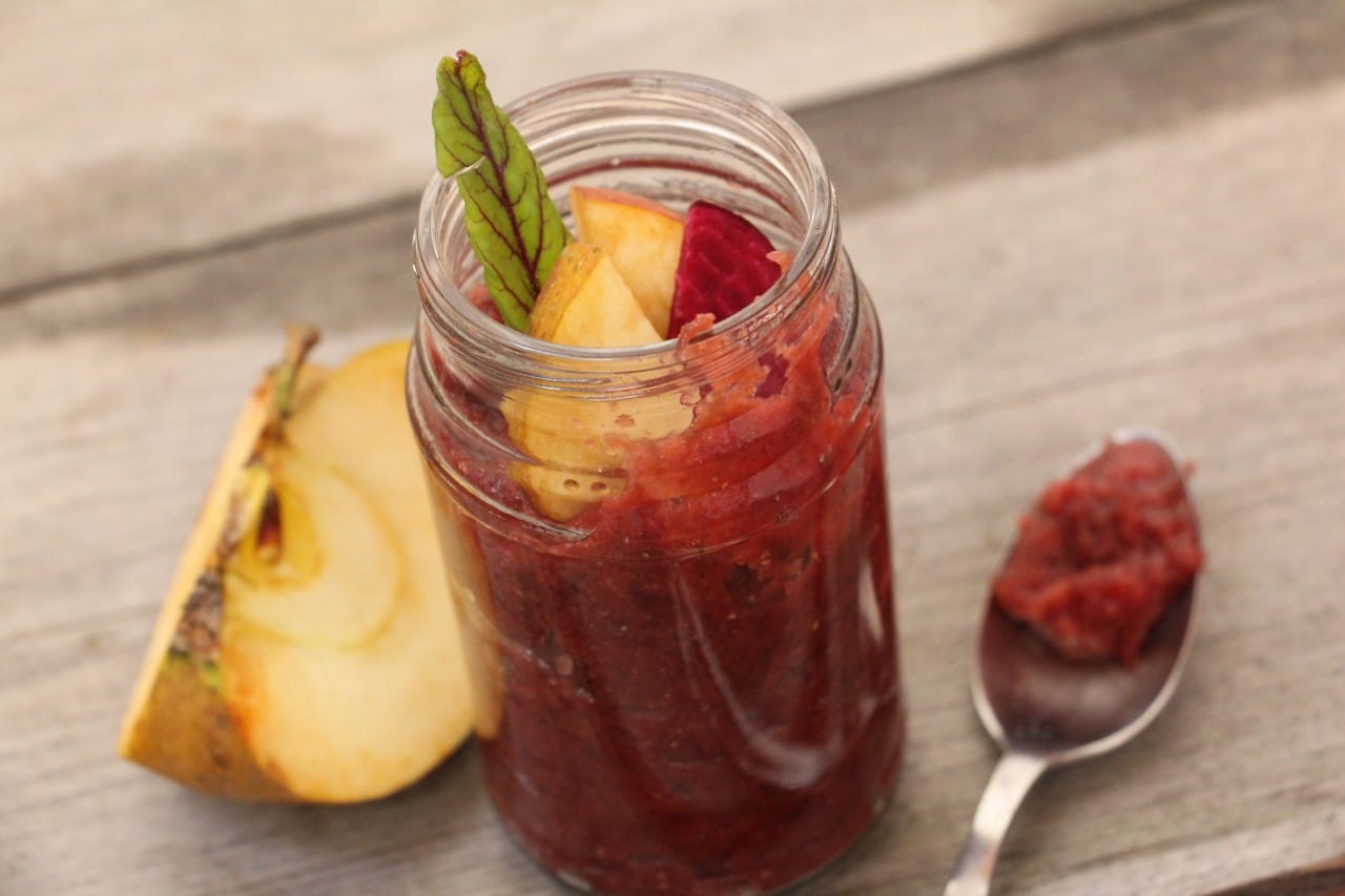 Odkar imam svoj vrt, vsako leto prav z namenom vlaganja pridelam tudi peso. Letos mi ni najbolje uspela, zato sem je vložila le nekaj kozarcev, ostale manjše pa so čakale v hladilniku. Par sem jih porabila za kosilo, želela pa sem jo še dodatno vključiti v Emino prehrano. Združila sem zdrob in čežano ter jima dodala peso. Kašica, ki je nastala, je ravno prave gostote, da se dobro oprime žlice in je tako kot nalašč za vedno bolj spretno samostojno hranjenje z žlico.