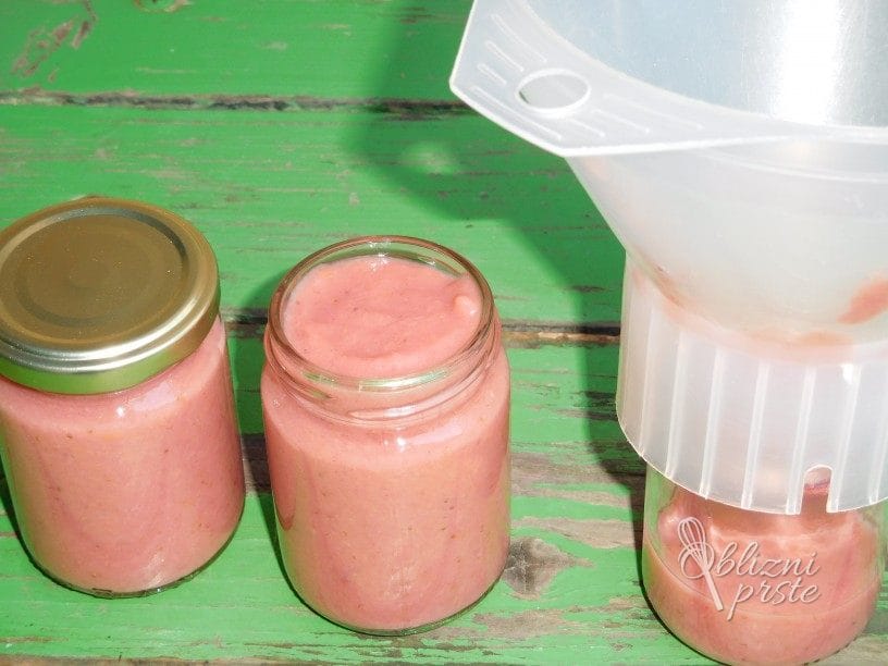Napolnjene in zaprte kozarce za nekaj minut obrnemo na glavo, da se razkužijo tudi pokrovčki, potem vse kozarce pravilno obrnemo in pokrijemo s kuhinjsko krpo ali odejico, kozarce pustimo pokrite preko noči, da se počasi ohlajajo. Ohlajene kozarce opremimo z etiketo s podatkom o vsebini in letnici polnjenja.