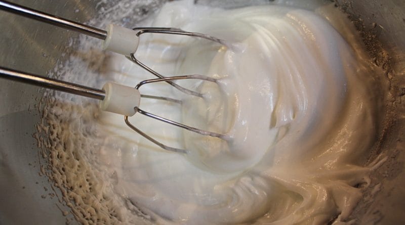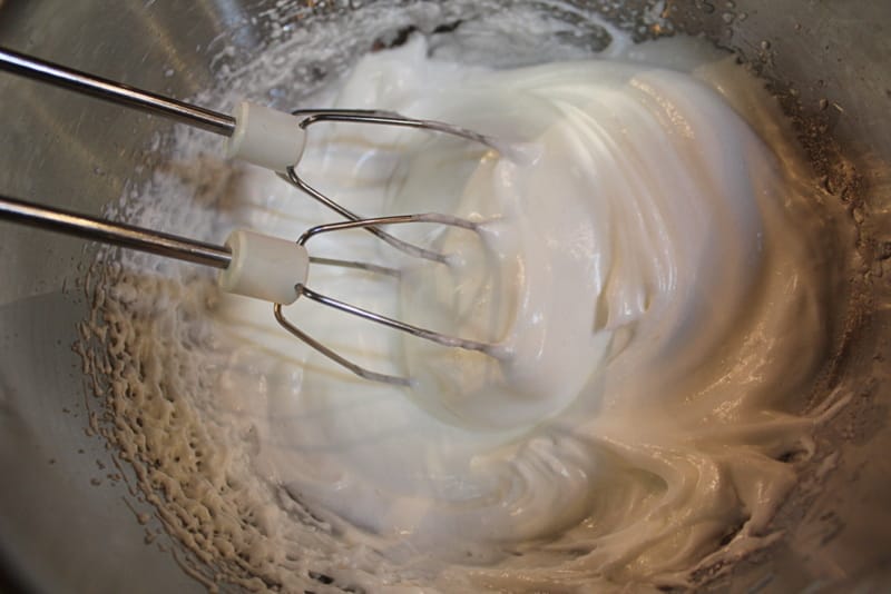 Lotimo se prvega nadeva. Jajcem ločimo rumenjake in beljake in iz beljakov naredimo sneg in mu dodamo sladkor. Sneg ne rabi biti močno trd.