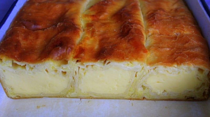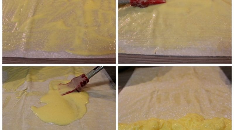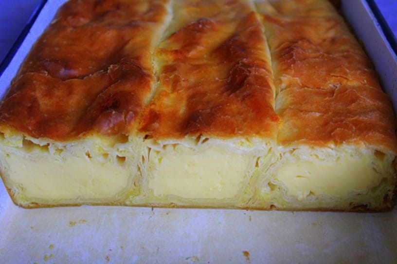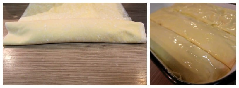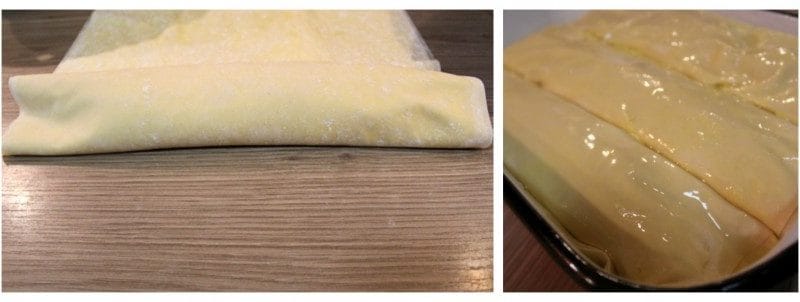Sedaj lističe testa zavijemo v zavitek in ga prenesemo v naoljen pekač. Postopek ponovimo še 2 x. Načeloma iz sestavin dobimo 3 zavitke.