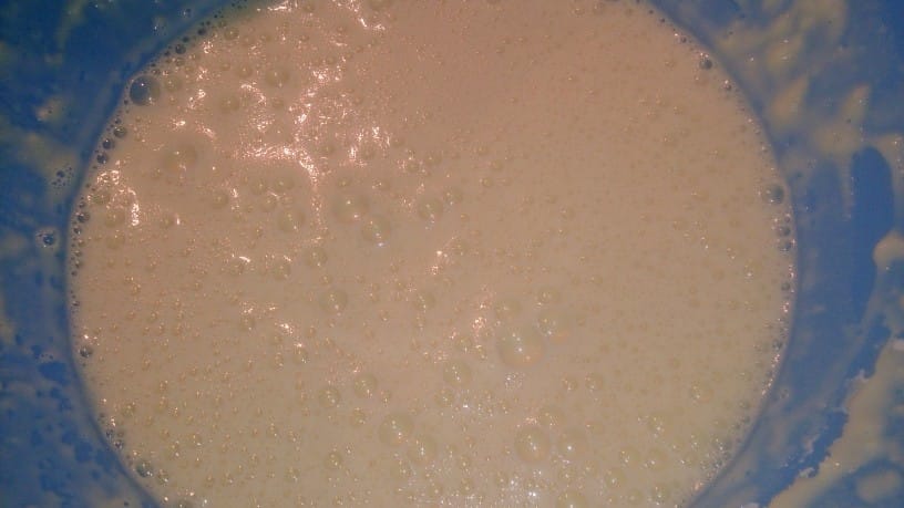Potem dodamo še 7 jušnih žlic moke in še 200 do 250 ml mleka. Premešamo, da dobimo gladko zmes brez grudic.