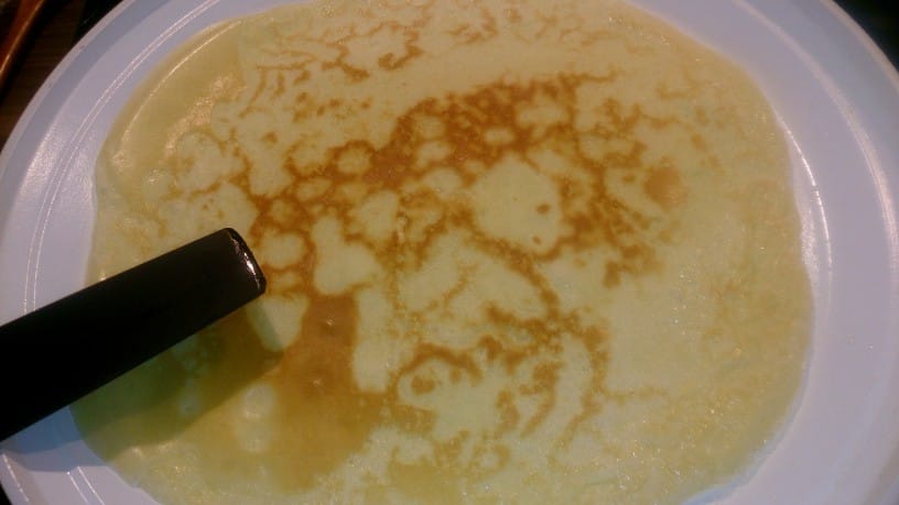 Pazimo, da se palačinka ne prepeče. Mora dobiti barvo, a obenem ostati prožna in mehka.