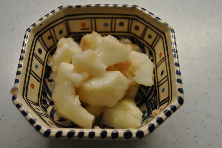 Ko se zdrob začne zgoščevati, ga odstavimo s štedilnika. Ko se zdrob ohlaja, pripravimo jabolko. Sadež olupimo, odstranimo pečke in narežemo na koščke, posujemo z malo cimeta, ter damo v blender.