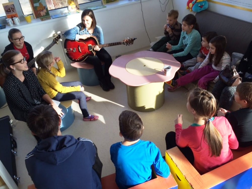 Matičeva mami, Urška Ribič, nam je za začetek spekla naravnost božansko čokoladno-lešnikovo-kokosovo torto, s katero smo se posladkali po tem, ko smo z našimi ambasadorkami, mladimi članicami ansambla Skrivnost iz Lukovice, spoznali, kako enkratna je narodnozabavna glasba. Sledilo je izdelovanje čisto prave harmonike iz papirja in odpadnih plastenk pod mentorstvom članic ansambla Skrivnost.